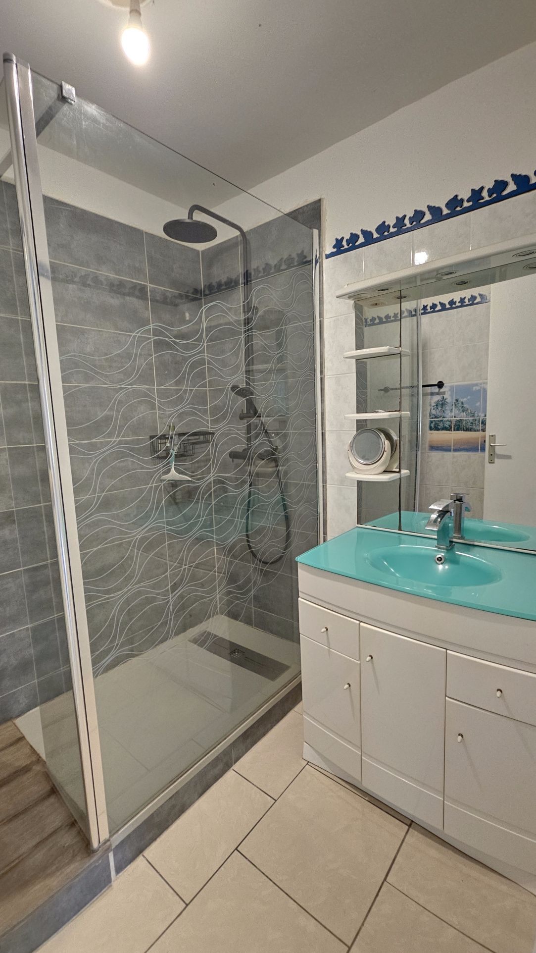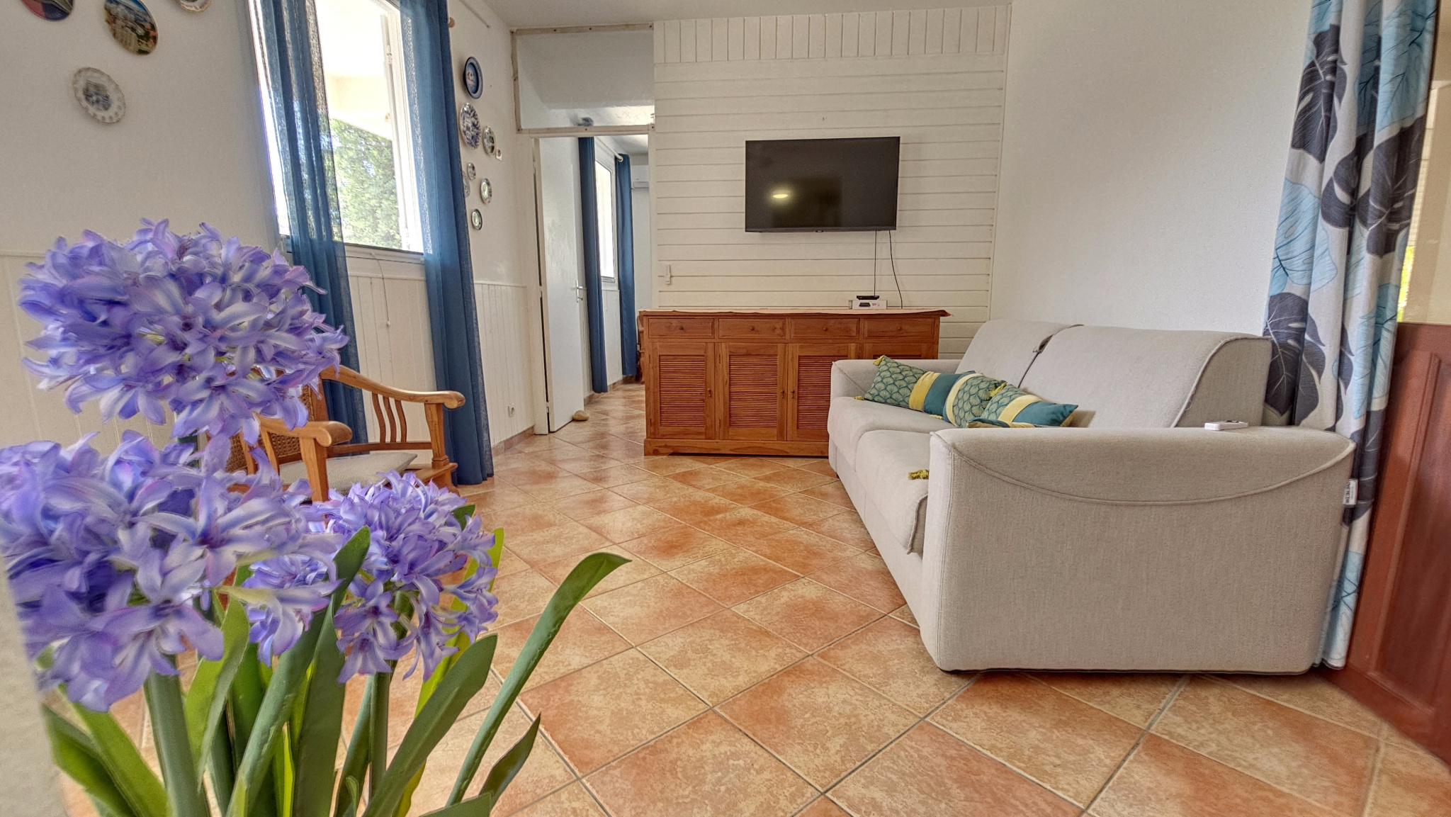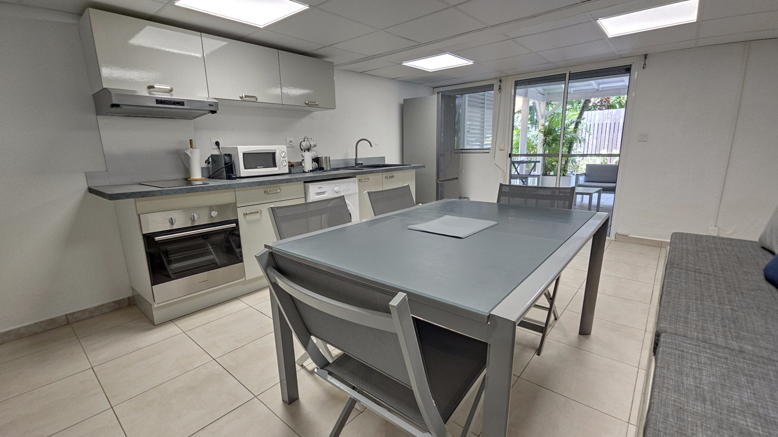 En rez-de-jardin, un garage pouvant accueillir plusieurs véhicules, avec accès direct à l'étage superieur. A côté, un T3 indépendant complètement meublé et équipé permettant de générer un revenu locatif immédiat (clientèle fidélisée).