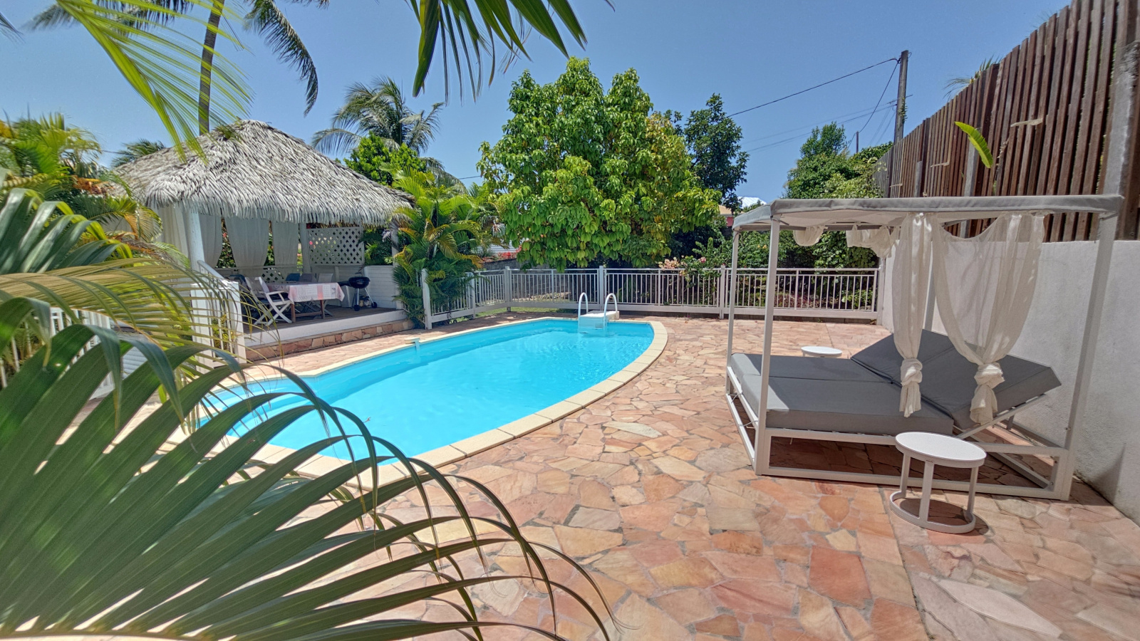 Vous pourrez apprécier sa grande piscine et sa pergola, idéales pour des moments en famille ou entre amis, de même qu'un jardin soigneusement entretenu, agrémenté de différents arbres fruitiers.