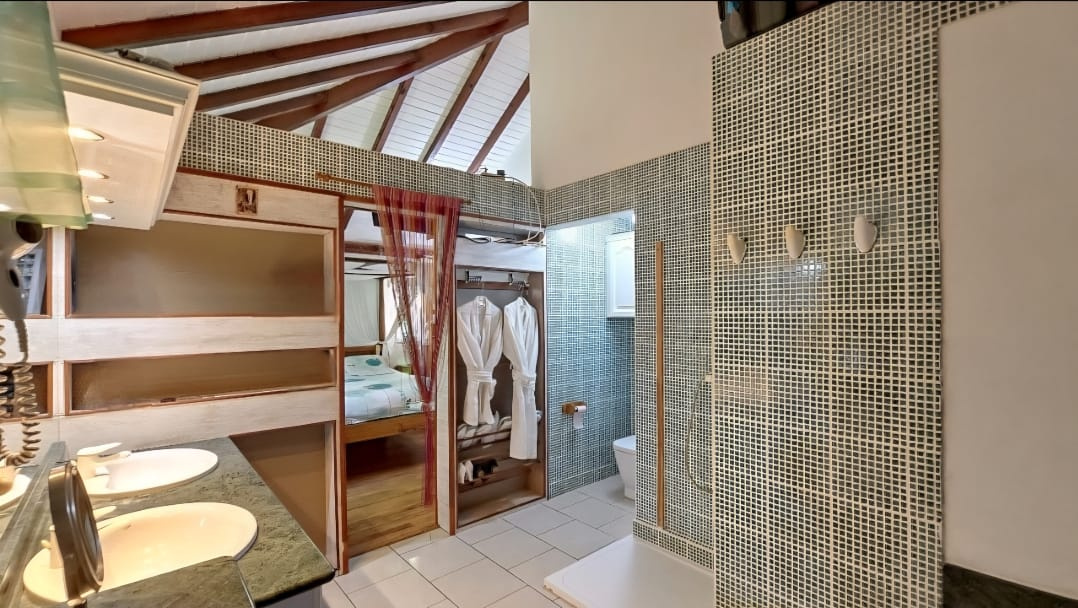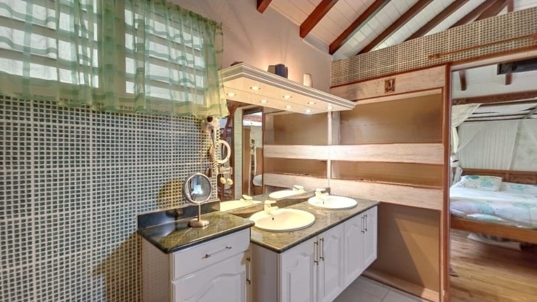Elle se compose en R+1 de 4 chambres dont une suite parentale avec salle d'eau/bain attenante, et une chambre en mezzanine, 2 bureaux dont un en mezzanine, une salle d'eau, un WC indépendant, une cuisine spaceiuse ouverte sur un séjour lumineux attenant à la terrasse.